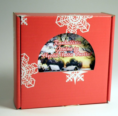 Tai punaiseen jouluaiheiseen uutuus-koteloon.